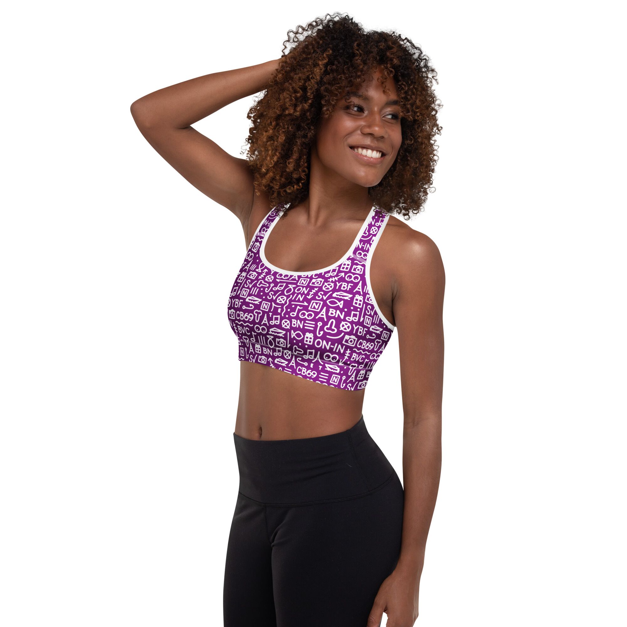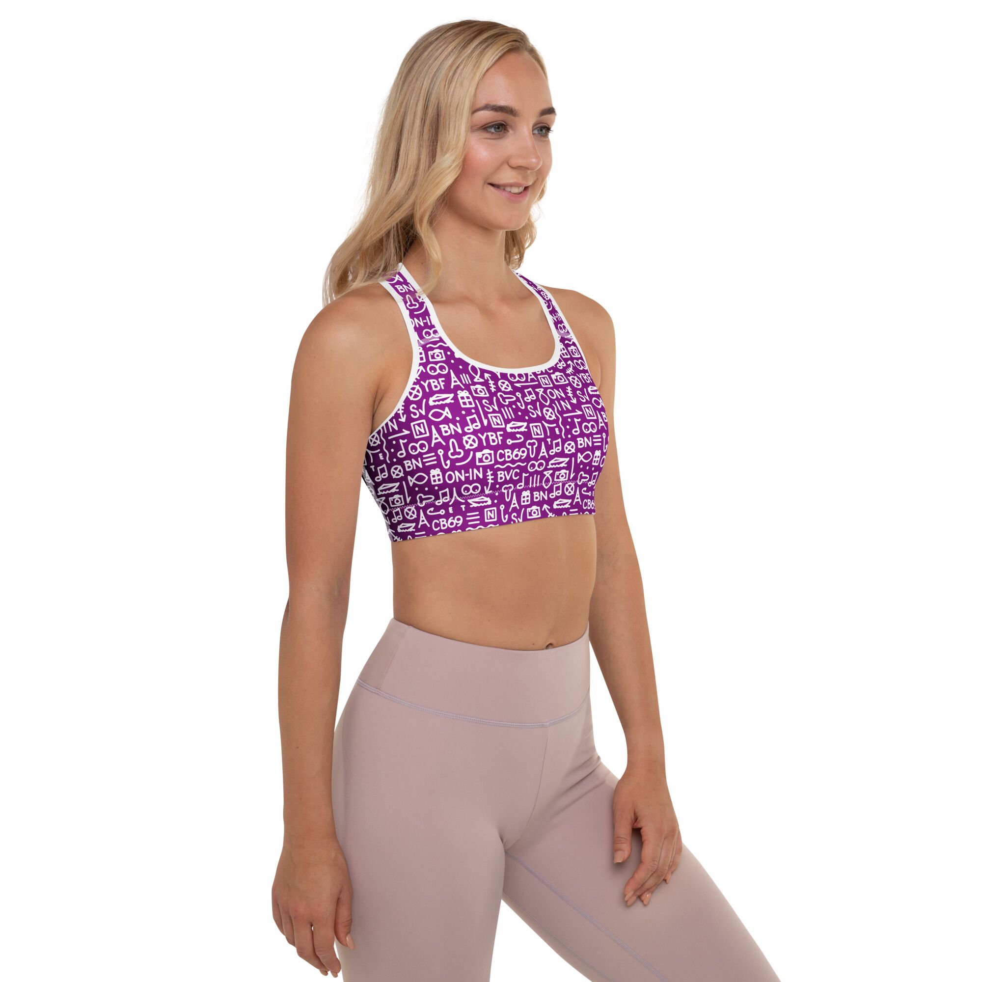Get the perfect bra for your workouts! This comfy bra has a soft moisture-wicking fabric, extra materials in shoulder straps, and removable padding for maximum support.