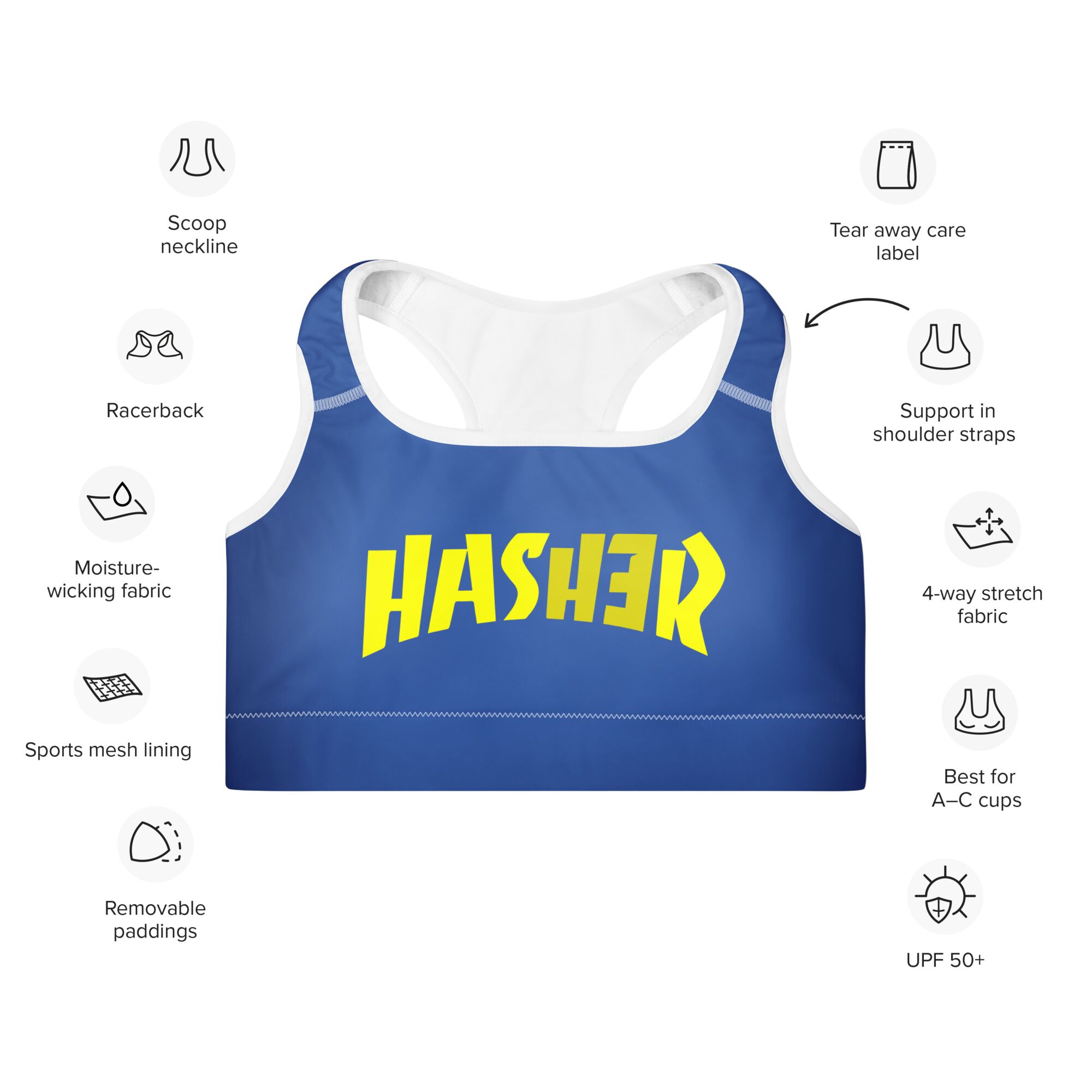 Get the perfect bra for your workouts! This comfy bra has a soft moisture-wicking fabric, extra materials in shoulder straps, and removable padding for maximum support.