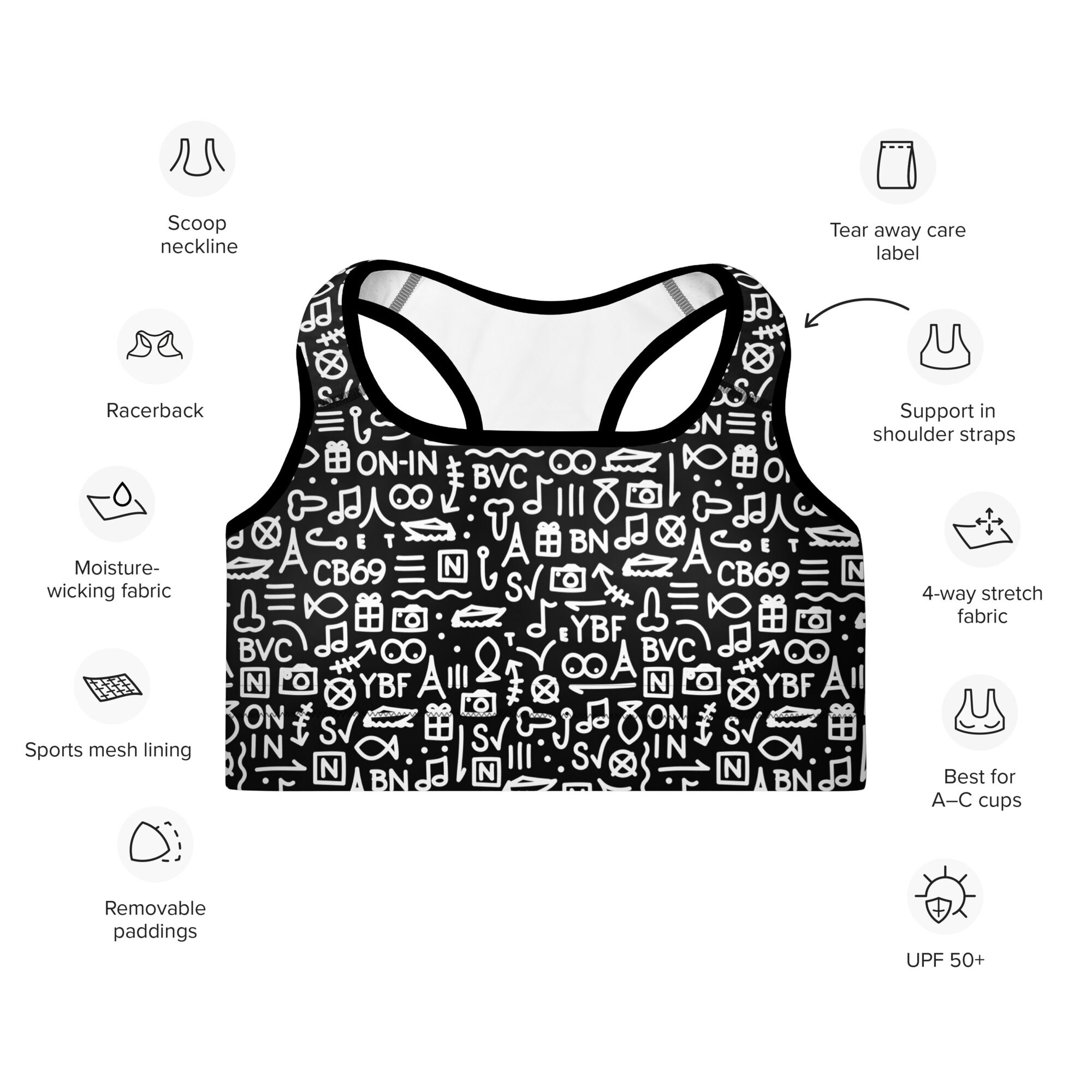 Get the perfect bra for your workouts! This comfy bra has a soft moisture-wicking fabric, extra materials in shoulder straps, and removable padding for maximum support.